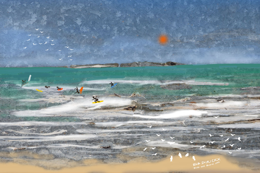 Looking at our electrical meter box I notice the was a lot of bird shit over the left hand side of the cover. I noticed interesting colour and texture that resembled the surf. So I promptly photographed it and created  the artwork. Available in 16 x 12 " limited edition Artmounts.